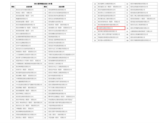 喜报|威尼斯官方网站登录荣登 2021重庆制造业企业100强